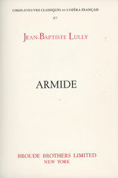 [Armide vocal score]; Armide: Title page 1 Summary Content type Content type Page Collection(s) Collection(s) [Armide vocal score]; Armide Resource Type Resource Type Notated music Origin Information Origin Information Place New York Date Created/Date Issued 1971 Publisher Broude Brothers Persons and Affiliations Persons Composer (cmp): Lully, Jean Baptiste Contributor (ctb): Quinault, Philippe Abstract/Description Description / Synopsis Description / Synopsis Reprint: originally published Paris, T. Michaelis, 18--. Libretto by Philippe Quinault Language Language English French Identifiers Local Identifier Local Identifier 010_4 Subjects and Classifications Keywords Keywords Italian French LGBTQ+ Subject Topic Subject Topic Operas--To 1800--Vocal scores with piano
