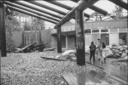 Exterior Landscape of The First Nations Longhouse Summary Content type Content type Image Collection(s) Collection(s) Contact Print: First Nations Longhouse Exterior and Interior Abstract/Description Description / Synopsis Description / Synopsis The interior of the Longhouses wood log cover can be see, with a building in the background. Two individuals can be seen to the bottom left of the image, under the cover. Identifiers Local Identifier Local Identifier PC-020-003-005-29 Subjects and Classifications Keywords Keywords landscaping