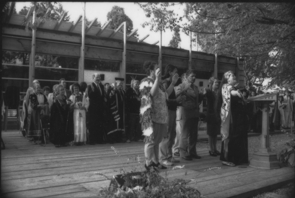 Summary Content type Content type Image Collection(s) Collection(s) Contact Print: The Opening Ceremonies of the First Nations Longhouse Abstract/Description Description / Synopsis Description / Synopsis Maori Elder and Spiritual Leader Rangimarie Rose Pere from New Zealand leading attendees in a greeting. Attendees and guests (pictured at the back of the image) raise their arms. Identifiers Local Identifier Local Identifier PC-020-003-007-9 Subjects and Classifications Keywords Keywords Maori, Elders Subject Name Person Subject Name Person Pere, Rangimarie Rose