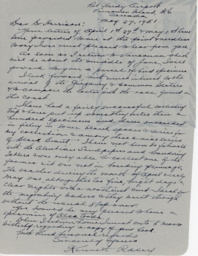 Summary Content type Content type Digital Document Collection(s) Collection(s) Correspondence of Racey and Harrison (1949-1953) and specimens Resource Type Resource Type Text Genre Genre correspondence Origin Information Origin Information Place Vancouver, Canada Date Created/Date Issued 1951-05-27 Persons and Affiliations Persons Author (aut): Racey, Kenneth Addressee (rcp): Harrison, James M. Abstract/Description Description / Synopsis Description / Synopsis Letter from Kenneth Racey to James Maurice (J.M.) Harrison, written on May 27, 1951. Handwritten. Language Language English Access and Rights Use and Reproduction Use and Reproduction Copyright Cowan Tetrapod Collection (CTC), Beaty Biodiversity Museum Rights Statement Rights Statement IN COPYRIGHT Subjects and Classifications Keywords Keywords Spatula querquedula, Alca torda, Garganey, Razorbill