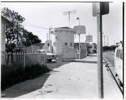 Black and white print of a closed key shop in Westminster, California with handwritten text on back. On verso: "R. CUMMING 2/73