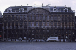 La Maison des Ducs de Brabant, one of the buildings in the Grand-Place, which is the central square in Brussels. The square in front of the Maison appears deserted except for a parked truck. Annotation on slide reads, "Belgium Brussels / Gran Palace." Image processing: rotated, cropped, adjusted levels.